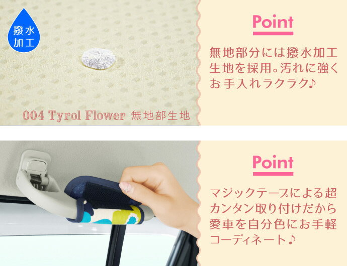 品名 / 型番 Ciel Dreamy アシストグリップカバー チロルフラワー柄 / CDGC-004 サイズ (約)長さ100×幅40mm (2個セット) 素材 ・表生地(柄):綿 ・裏生地(無地):ポリエステル 備考 ◆ 生地の性質上、汗や直射日光によって変色する恐れがあります ◆ 製品により柄の出方が異なりますのでご了承ください ◆ 運転の妨げになるようなご使用はお止めください ◆ 繊維製品の性質上、製品毎に若干サイズが異なることがあります ◆ 気分に合せて使い分けられるリバーシブルタイプのアシストグリップカバー ◆ 花柄、チェック柄やアジアン調、北欧調などおしゃれでかわいいデザインを豊富にご用意Ciel Dreamy<シエルドリミー>アシストグリップカバー チロルフラワー柄 / CDGC-004